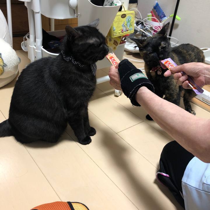 かーたんのヘルパーさんが私達にちゅーるもくれるのよ