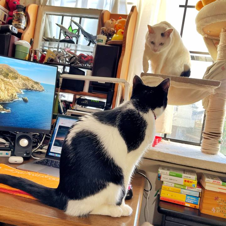 お見合い👀 #白黒猫 #保護猫 #YYバンド