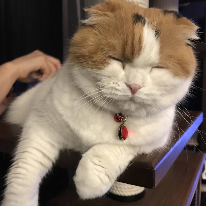 下僕がお手入れをさせて頂いております #スコティッシュフォールド#三毛猫