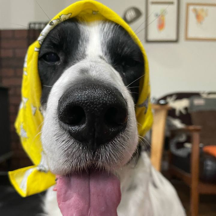 ⚡️ガタガタ震えて怖いのは気の毒だけど、つい笑っちゃう🙊ほっかむりゼロ距離🐶
