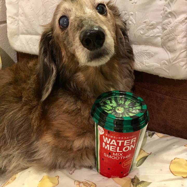 ぼくより🍉がメインなのであたまがきれてます🐶 おいしいと信じて購入🍉😘