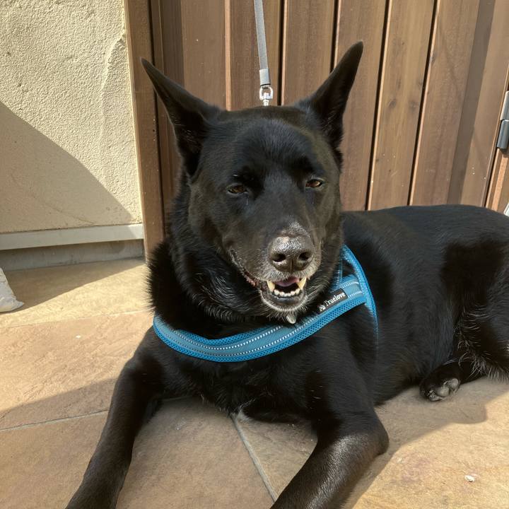 暑くて散歩行きません。 目が細くなっちゃって。 #黒犬