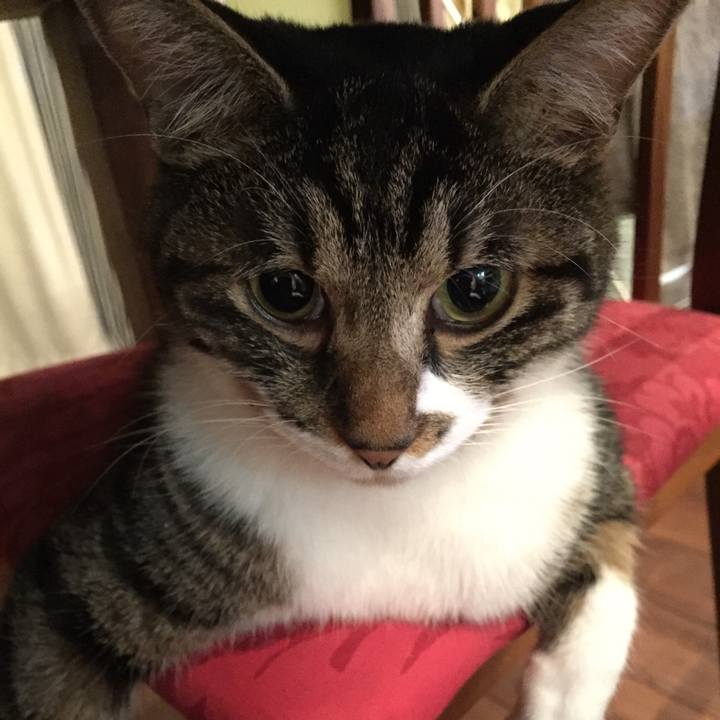 食事中 椅子に座って 参加キブン (テーブルの下) #ねこ句 #キジシロ