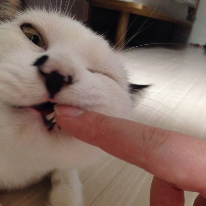 #甘噛み#甘えん坊#元保護猫#白黒#唇も牛柄