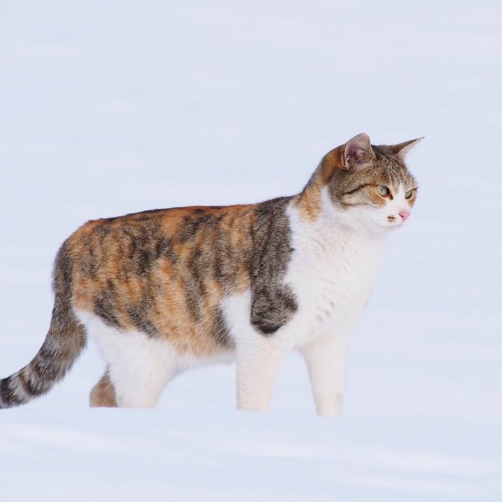 キリッ✨ #牛小屋猫 #三毛猫 #雪 #冬毛 #モフモフ