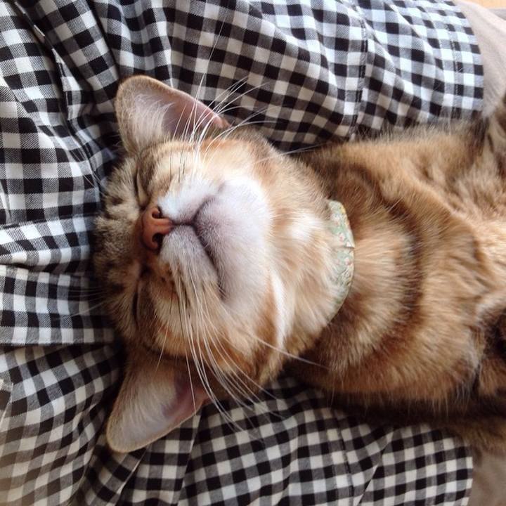 お膝でうっとり #熟睡#寝顔#ねこ人類#cat#ねこ#猫#茶トラ#マンチカン