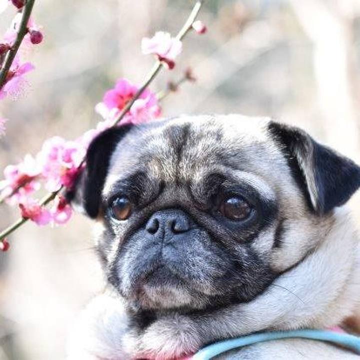 今年も、梅子の梅の季節がやってきました🌸 #パグ#梅#犬の日