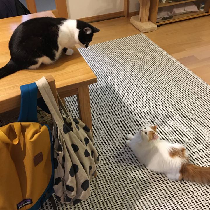 あ〜〜出くわした。 #女子はいろいろ #白黒 #茶白
