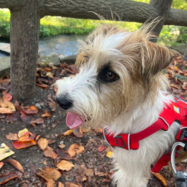 秋だけど暑いね🧡 顔に色々つくね#ジャックラッセルテリア