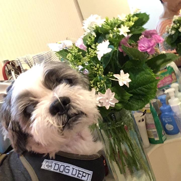 #シーズー #シニア犬 紫陽花の季節 花束を父ちゃんが買ってきたんだよ💠💠💠🍃
