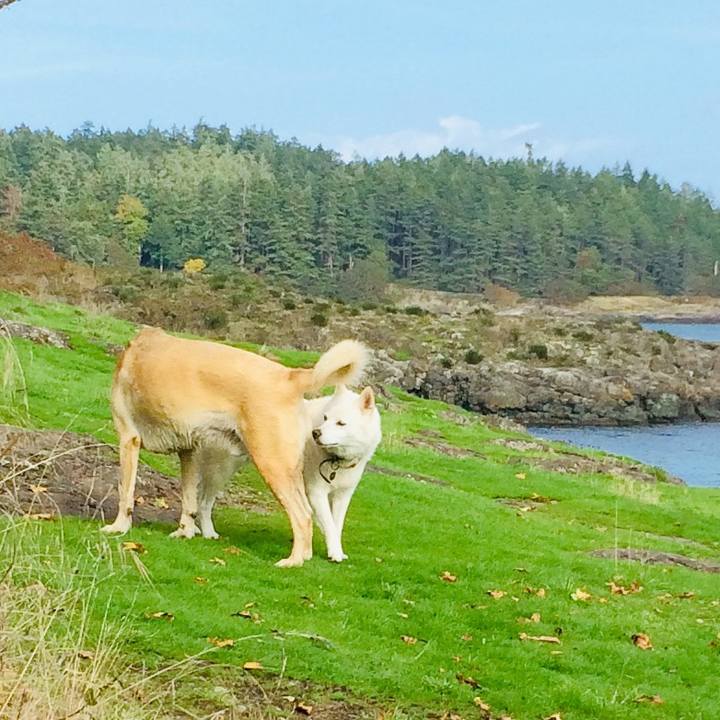 最近の雨で緑に戻った丘にて#昼んぽ#白柴#柴犬#柴犬ライフ