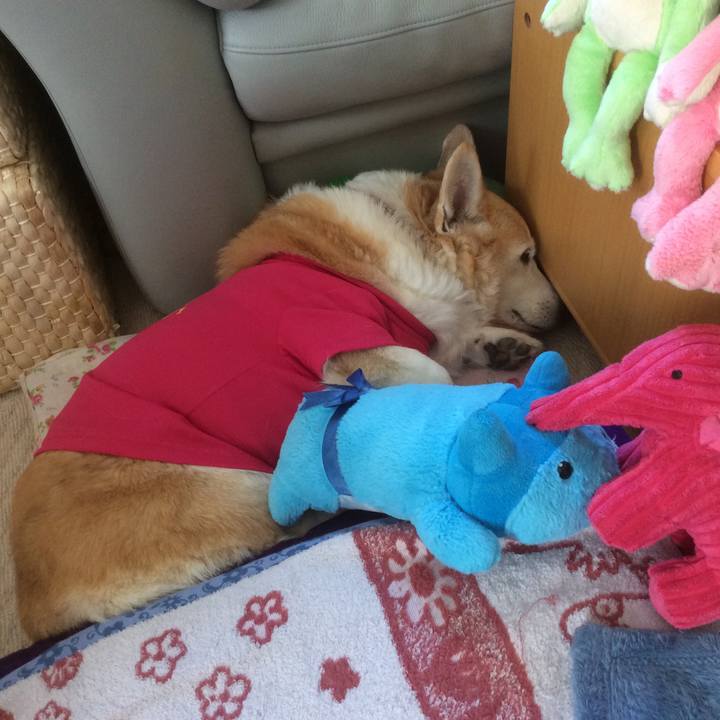 ねぇニッキーこっち向いて🎶 #コーギー #ぬいぐるみ #なかよし #ムーミン