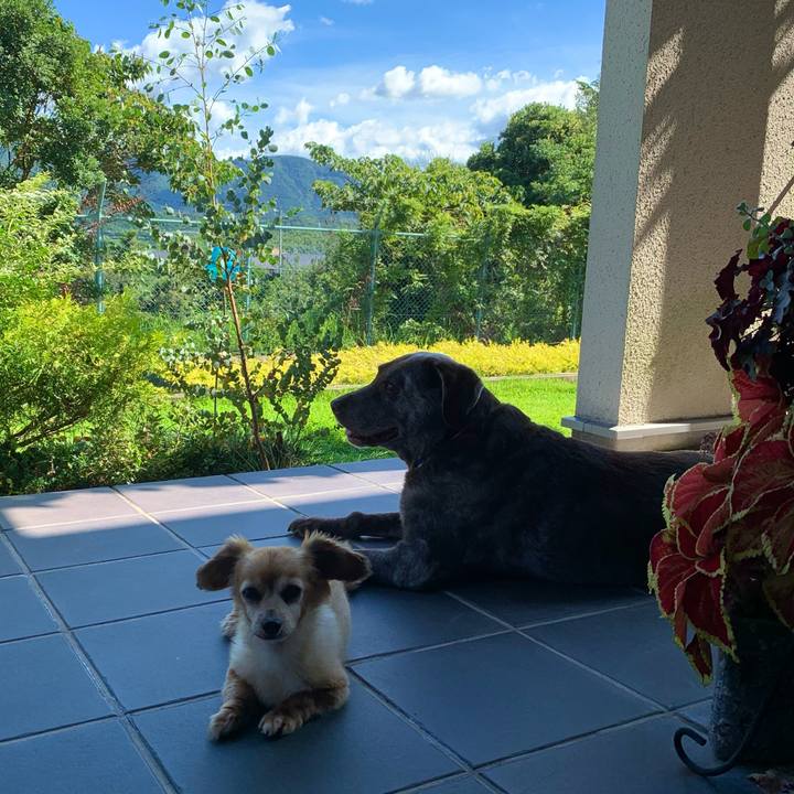 暑い日も 風とおしゃべり したいのよ #チワックス#ラブラドール#いぬ句