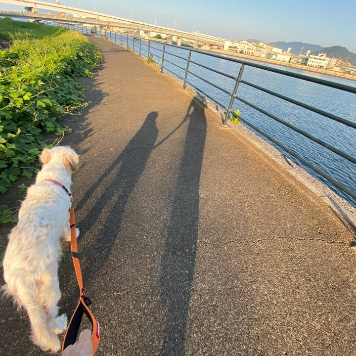 長くのびる影 早朝ピックさん一家が帰りのんびり散歩