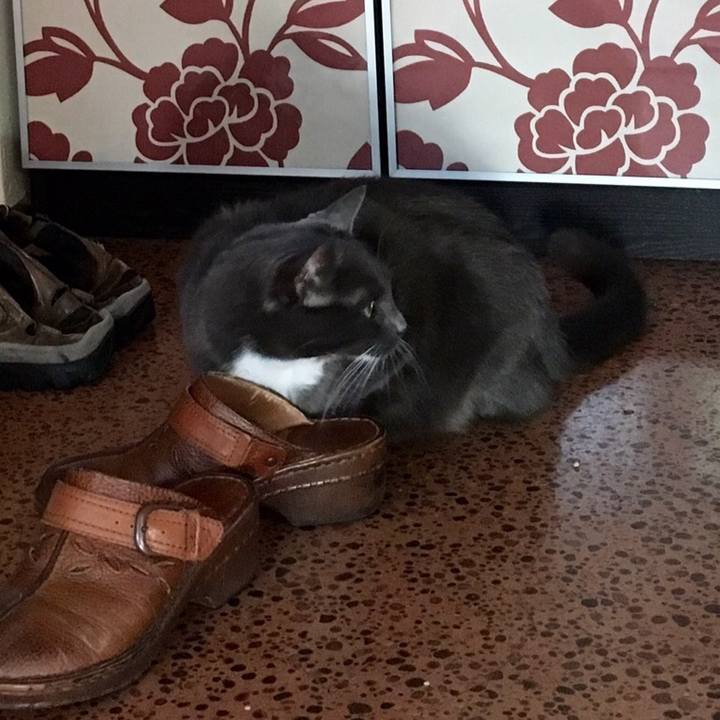 #ねこ句#靴下猫 この靴ね 異臭がします 捨てましょう (…それは福助臭😓)