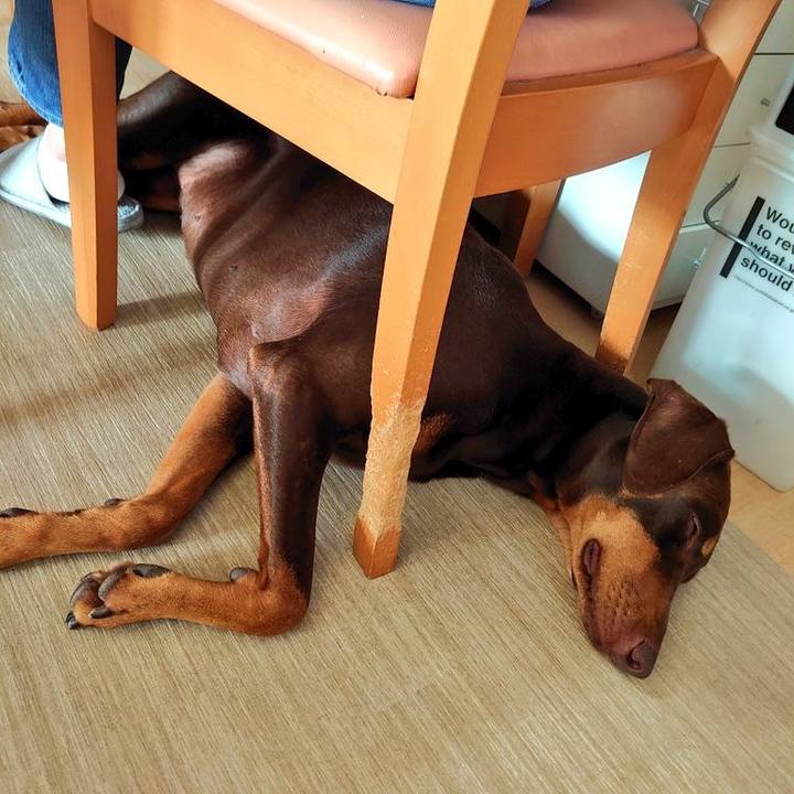 食卓につくと必ずと言って下に来る #かわいい #甘えん坊 #ドーベルマン