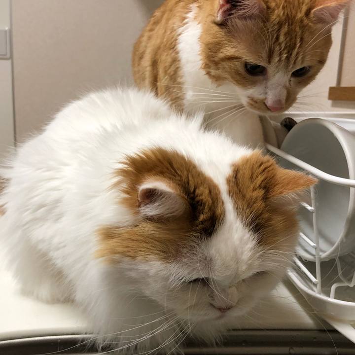おゆ ずっと みてられるお みてられるじぇ #シンク隊 #茶白 #水修行