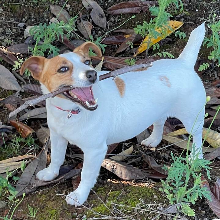 ボール投げてくれないから、木の枝で遊んじゃおっと‼️ #ジャックラッセルテリア