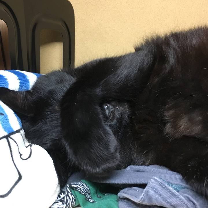 もういいかい? かくれんぼの鬼ですか? #保護ネコ部 #黒猫 #まぶしい寝