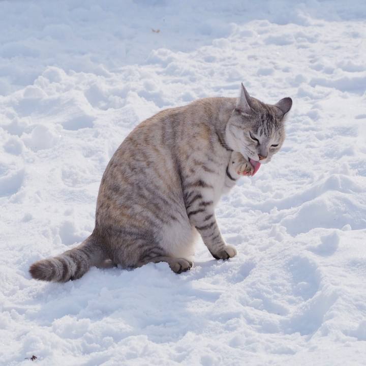 しぺりんこ✨ #サバトラ #鯖組 #毛繕い #雪