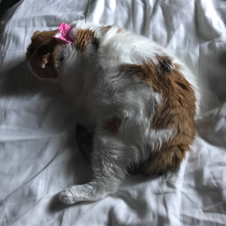 新しい寝具でおひるねまりたん #スコティッシュフォールド #三毛猫