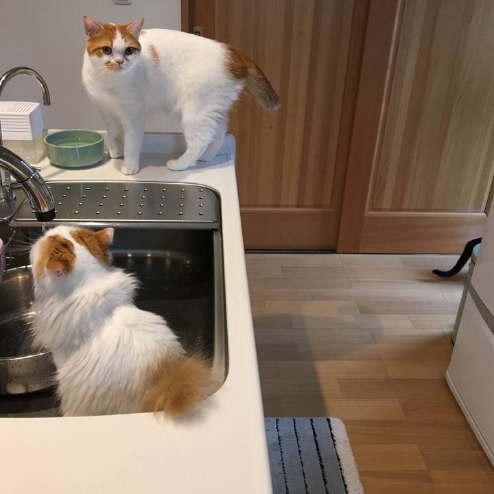 うはよう。今朝のフォーメーション。 もるこもいるよ。 #水修行 #シンク隊
