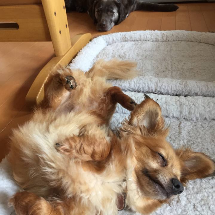 ストレッチ寝 #チワックス#寝相#話せばわかるイヌ#おなかを見せる#変な動き