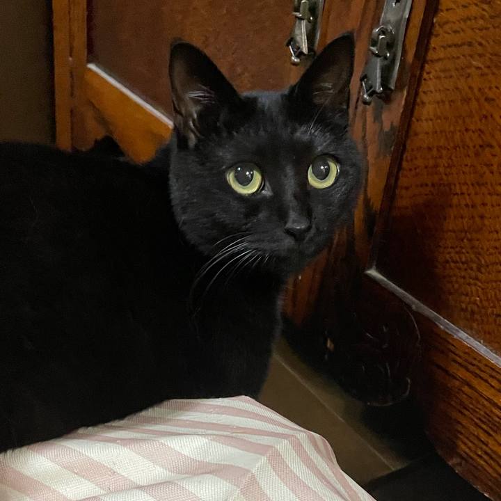 キラキラ目 いたずら前は 楽しそう #黒猫 #ねこ句