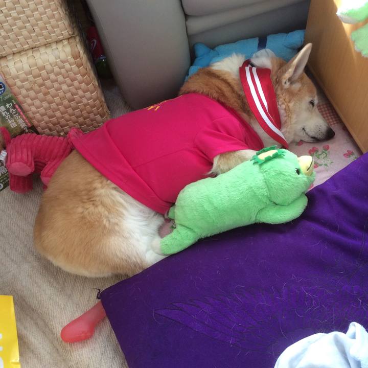 昨日の昼間のすやすやさん💤この後カッパちゃんの肩を抱いていました😊