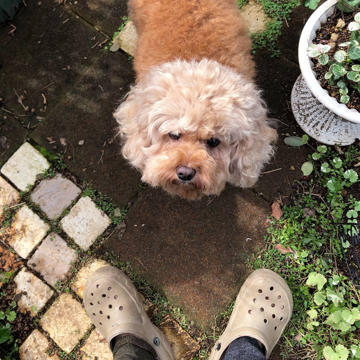 散歩から帰ったらすぐ庭仕事🌼🐶