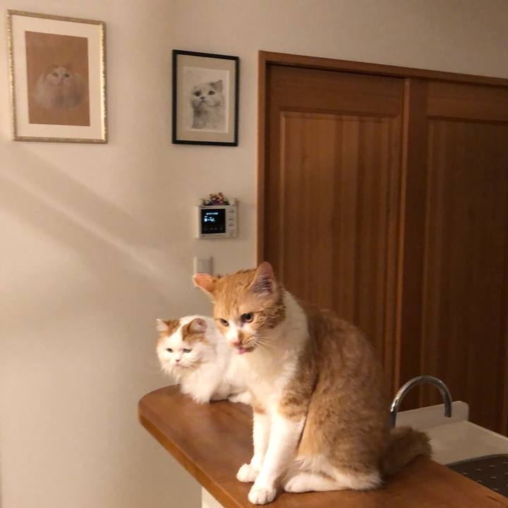 びちゃびちゃのコとふあふあのコ #茶白 #ハチワレ #モフュラス #子猿