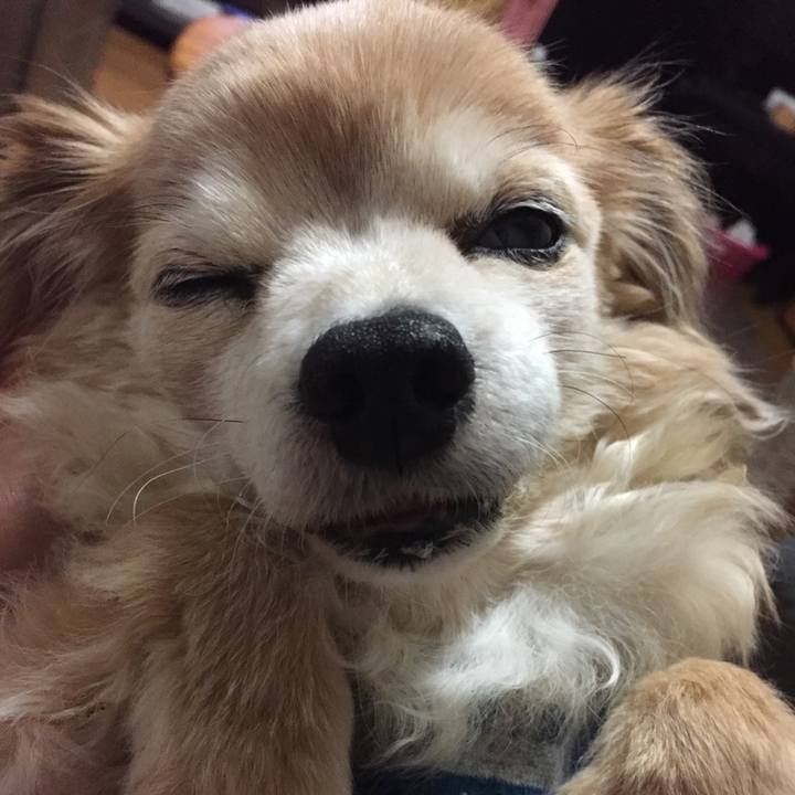 こんな顔で寝てる時もあります⁉︎ #老犬 #おやすみ #変顔