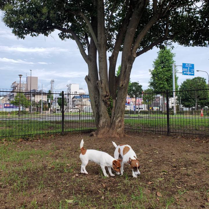 今朝は#クン活 なのね #朝ドッグラン #多頭飼い #ジャックラッセルテリア