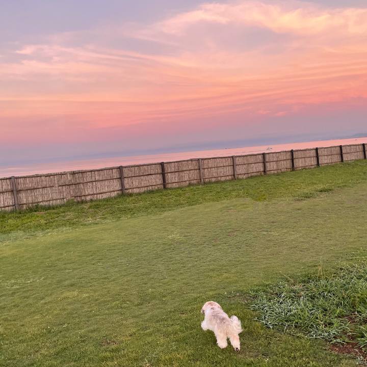 わーい💨 と逃げ出すように見えて現実は極めて遅いテケテケ🐾 #シーズー #朝焼け