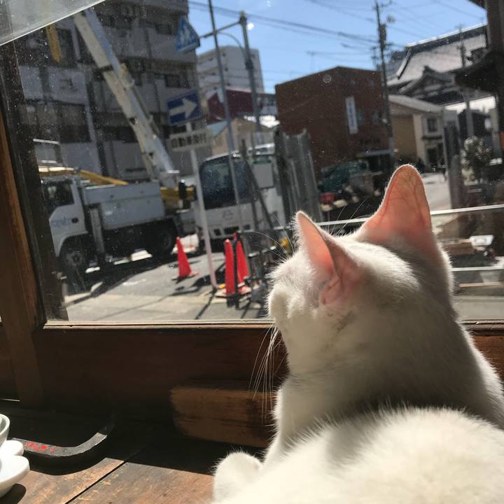 キリンさんのようなクレーンにくぎづけ #日向ぼっこ #白猫 #チーム白猫