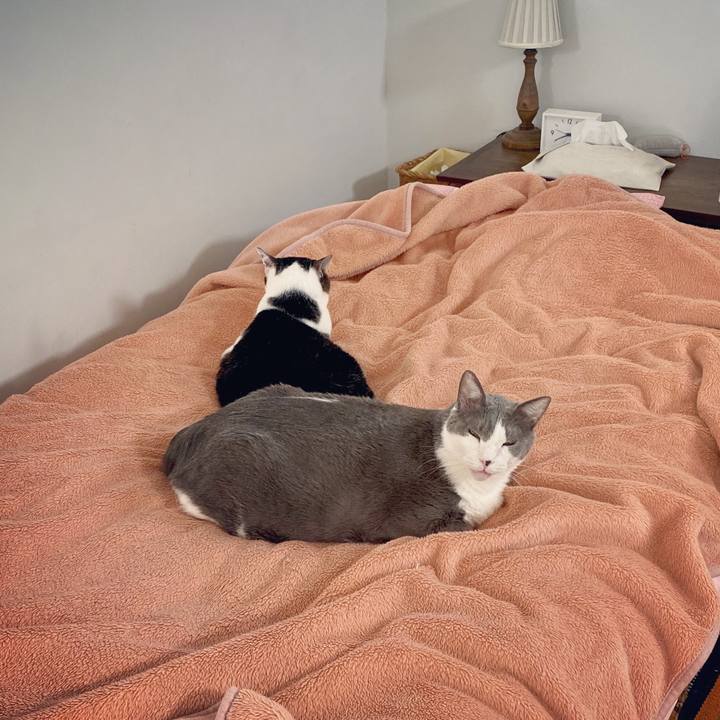 今日はお客さまでした🌸 ハチワレ組は、寝室に引きこもってました🐚🐌 #ハチワレ