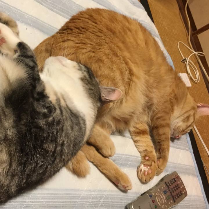 またもやお尻に刺さって寝るひと#ほぼcat#茶トラ#縞ミケ#ぷくよか #気絶
