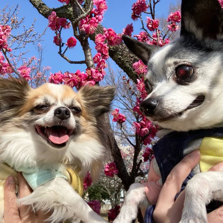 おさんぽで 花活楽し 春ちかし #いぬ句 #にわんこ #花活