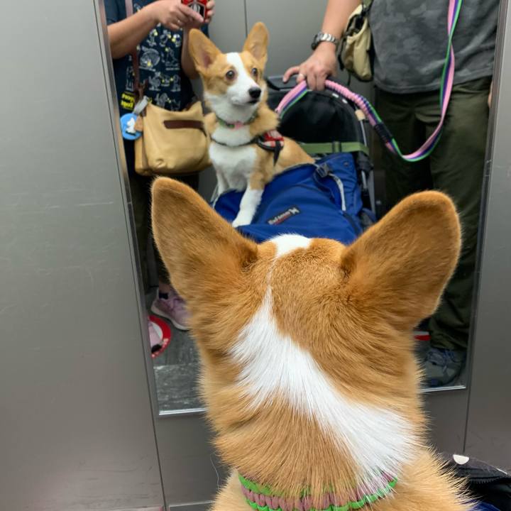 エレベーターの鏡🪞🛗 #コーギー #2歳 #お出掛け