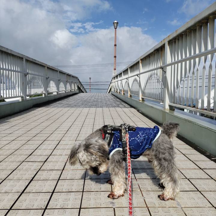 ☔で濡れた足元気になる🐾 小雨で出たのに晴れてる☀ #シュナウザー