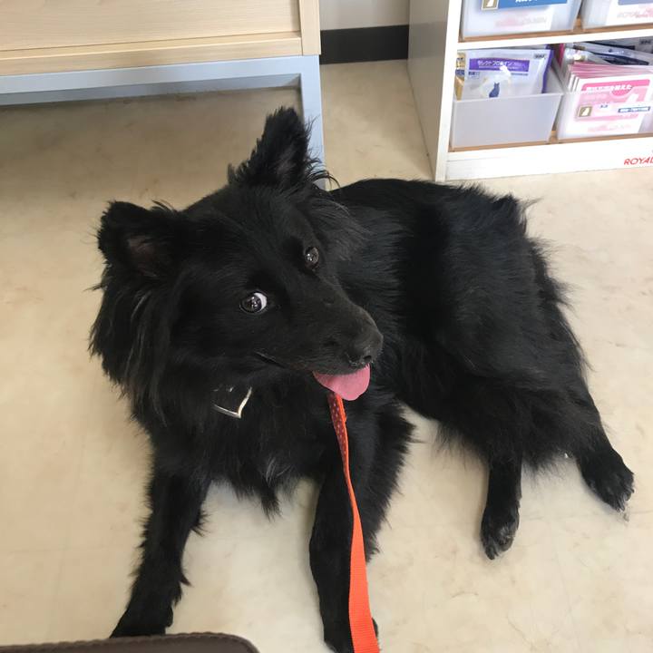 病院のすみっこで待機中。 お耳掃除と爪切りです🐶 #保護犬 #黒犬 #病院苦手