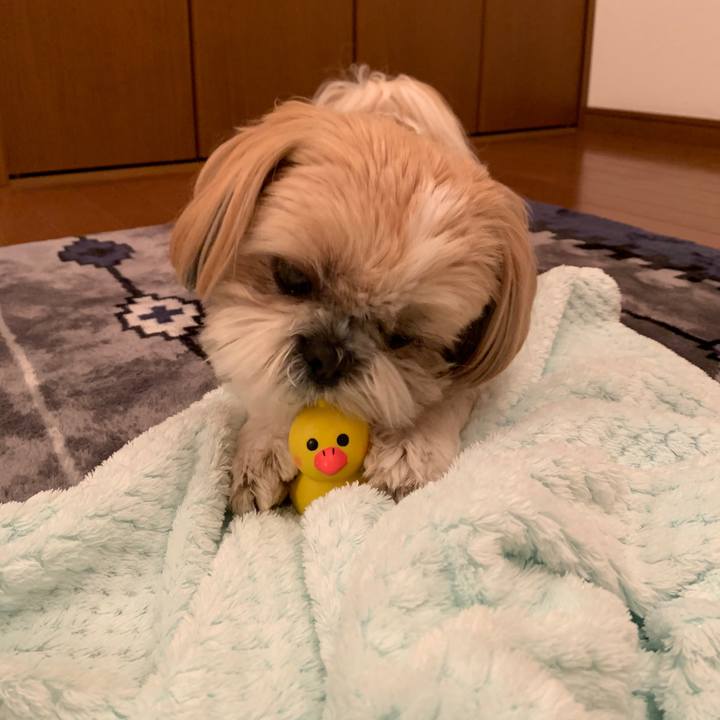 あひるのガーコです…とさかをちょっと噛んでみる🐶