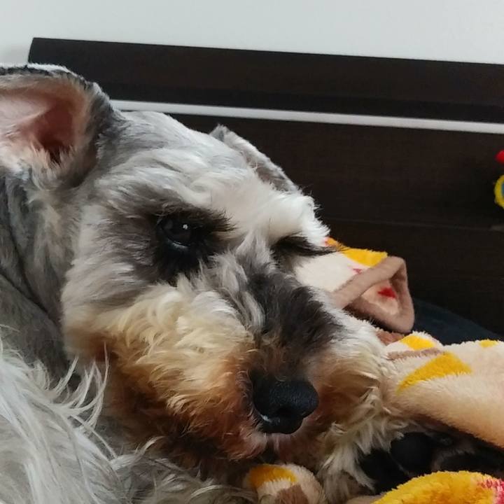 あきらめて そろそろ起きると 心決め #いぬ句 #あめんぽ #シュナウザー