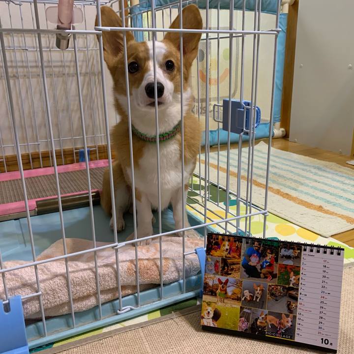 10月もよろしくお願いいたします🤲 #コーギー #2歳 #ドコノコカレンダー