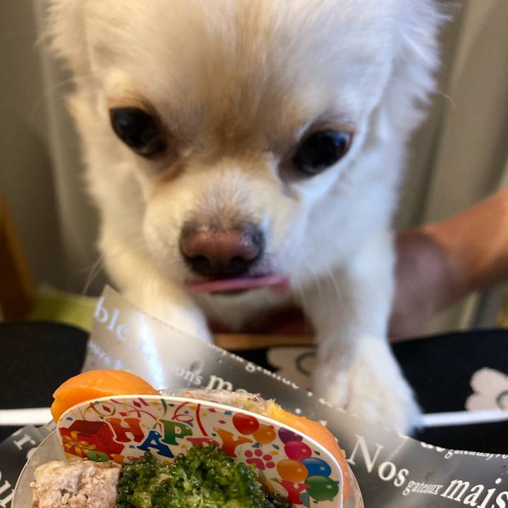 お肉ケーキ🎂おいしい〜😋 #チワワ #お誕生日 #ケーキ
