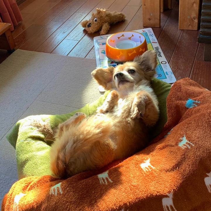 謎の小動物🐾 #チワックス#ミックス犬#愉快な寝相#寝床#ヘソ天#ぐぅたら天国