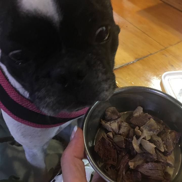 サービスでマグロの血合い戴きました#フレンチブルドッグ#寿司屋#カウンター#立川