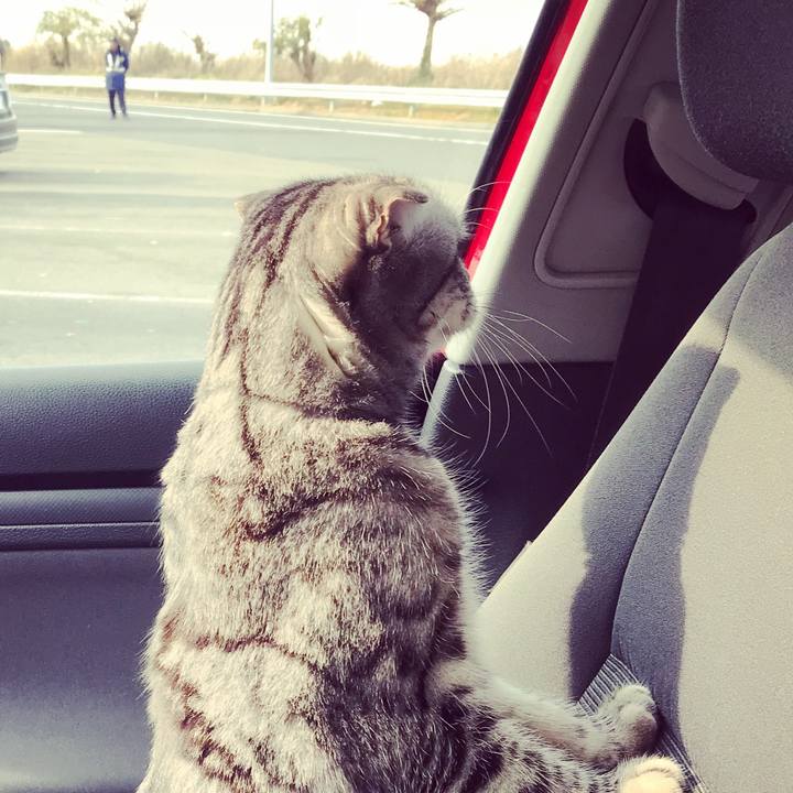 でも、車でお外をみるのがすきなの。#猫の日 #スコティッシュ