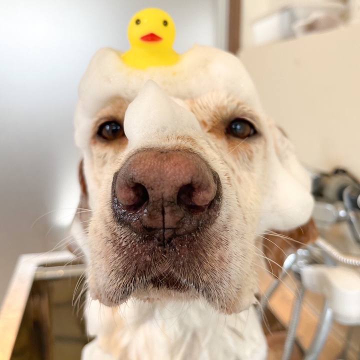 飼い主が夏バテしてるので、トリミングサロンで洗ってもらった晴。#シャンプー