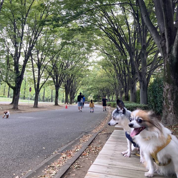 緑のトンネルこれから色づく気配 #あさんぽ #にわんこ #チワワ #パピヨン